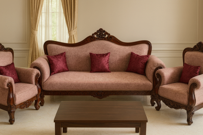 Living Room, Teakwood Sofa Set